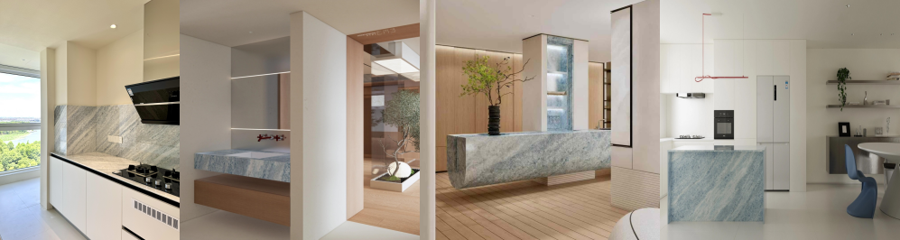 Calcite Azul is versatile, yet its rarity often dictates its use in "statement" areas: