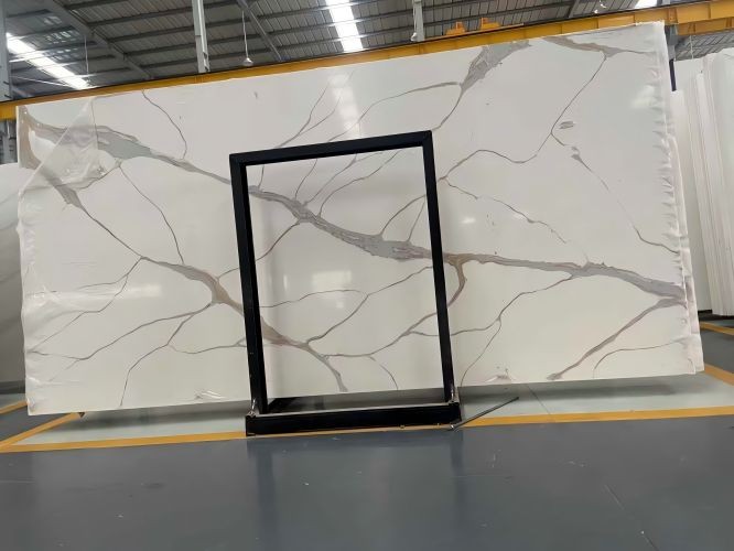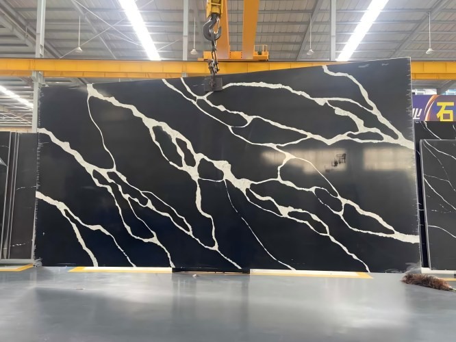 Black Calacatta Quartz is manufactured using 93% premium natural quartz aggregates and 7% advanced polymer resins and pigments. This specific variety undergoes a meticulous "vein-injection" process to ensure the patterns look organic and fluid, rather than mechanical.