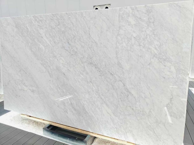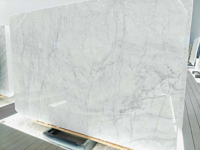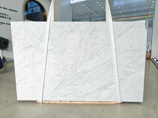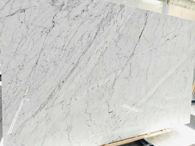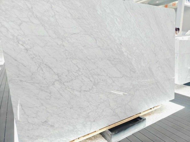 A frequent search for buyers is Calacatta vs. Carrara marble. While both are Italian, Carrara marble typically has a grayish-blue undertone with feathery, fine veins. In contrast, Calacatta white offers a much whiter field and more "brecciated" (chunkier) veining, making it significantly rarer and more valuable for high-end statement pieces.