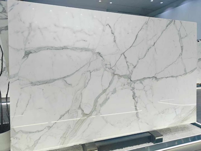 When fabricating Calacatta white marble, artisans must use high-quality white adhesives. Using dark resins can result in "shadowing" visible through the stone's translucent white matrix. Always perform a dry-layout to align veins before final cutting.