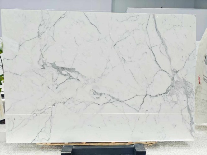 Our warehouse typically holds over 5,000 square meters of Calacatta White slabs in various grades (from Commercial to Extra Premium), ensuring that "book-matching" sets are always available for feature walls.