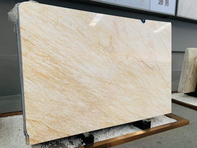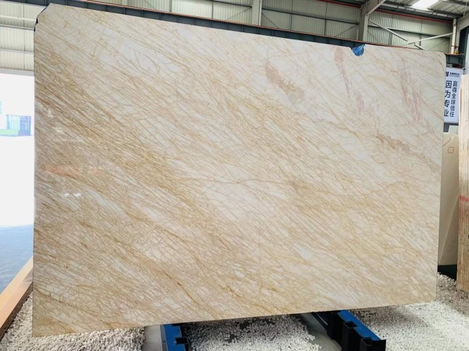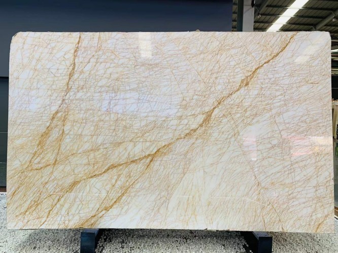 Golden Spider Marble is a prestigious natural stone celebrated for its striking appearance. It features a predominantly white base