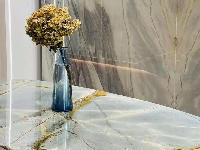 Natural marble is a unique product of nature with depth and translucency. Sintered stone is a man-made ceramic product. While sintered stone is more "indestructible," it lacks the prestige, unique veining, and value-retention of real marble.
