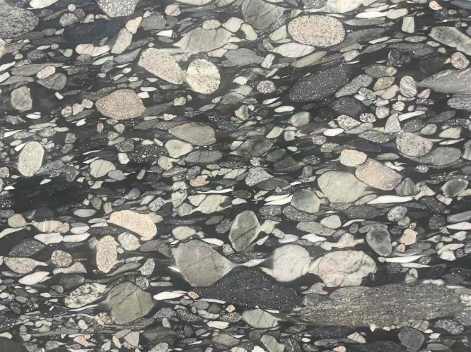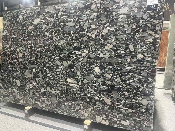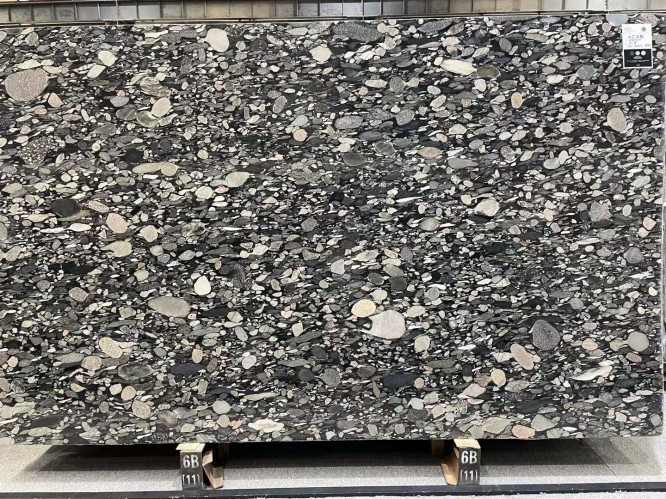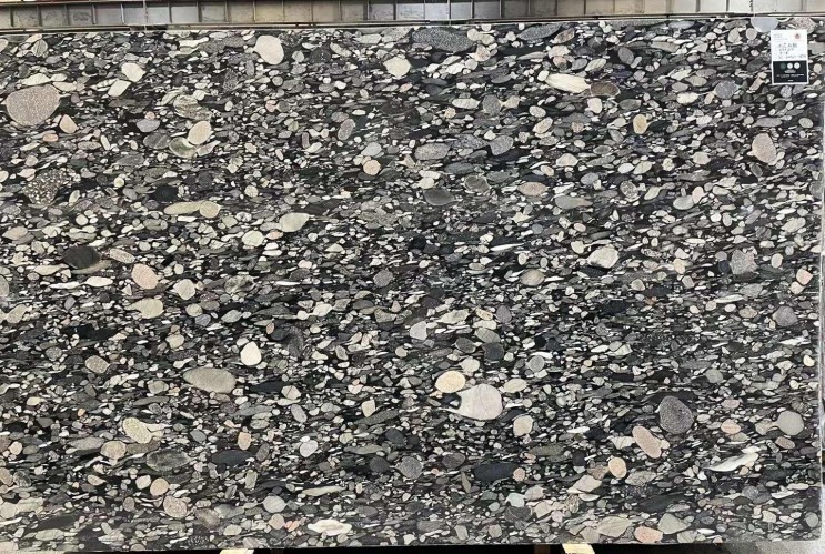 A unique polymictic metaconglomerate granite from Brazil, featuring a stunning "riverbed" aesthetic with naturally embedded pebbles. Known for its extreme durability (Mohs 6-7) and dramatic visual impact, it is a premier choice for luxury countertops, flooring, and feature walls.