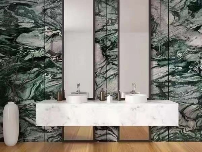 Backlighting: Some thinner or high-quartz sections of Verde Lapponia are slightly translucent. Experimenting with LED backlighting can create a stunning glowing effect.