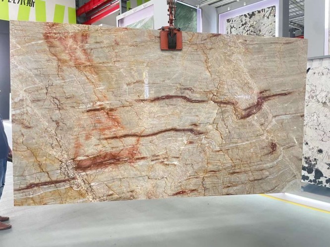 Nacarado Quartzite is typically available in "Jumbo" sizes to minimize seams in large-scale projects like kitchen islands:
