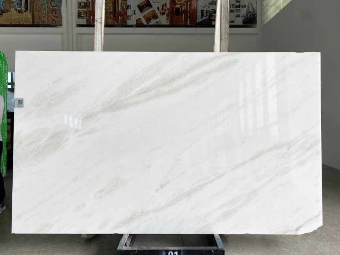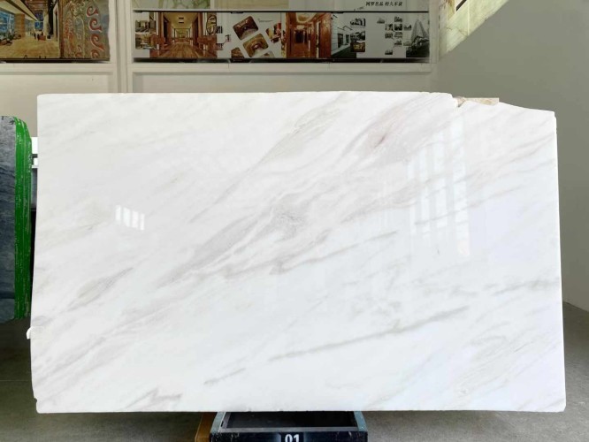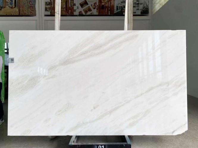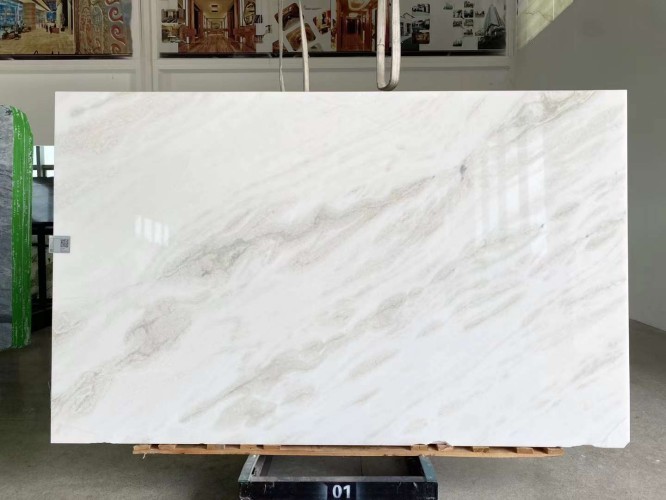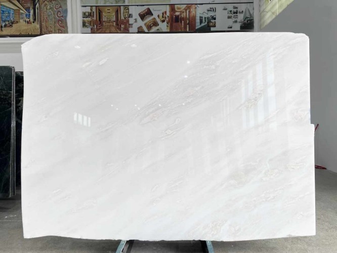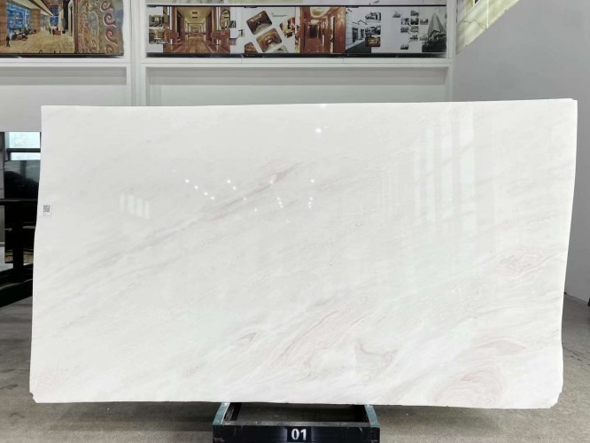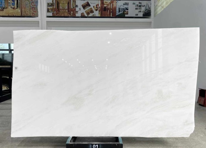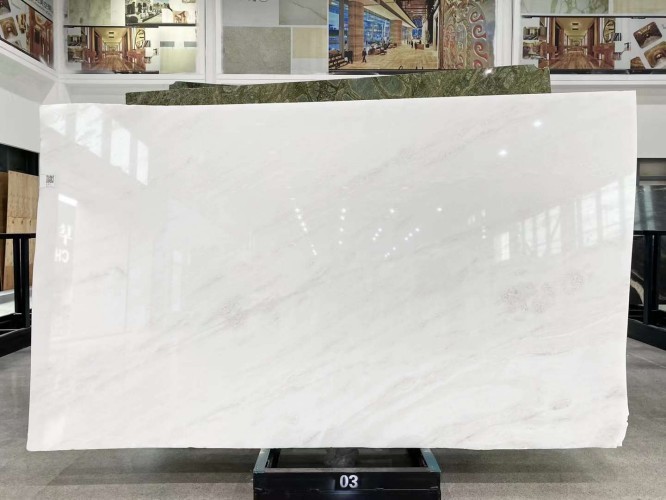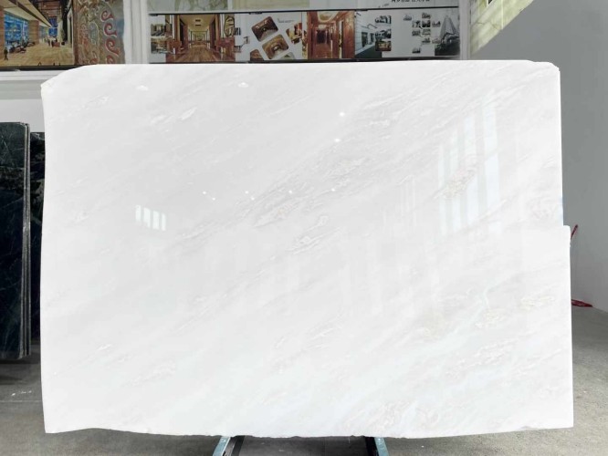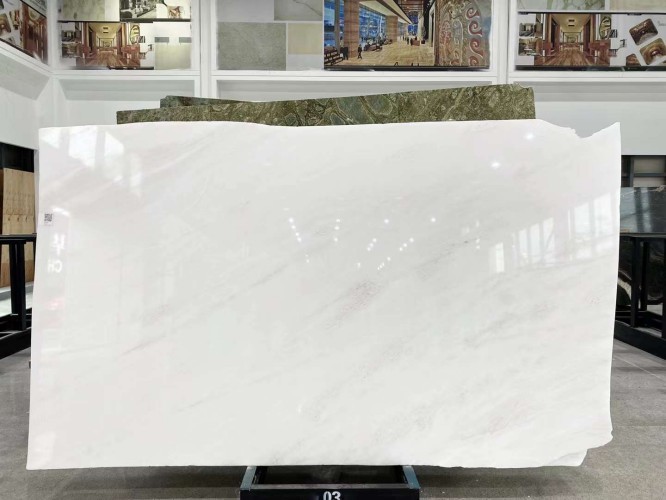 A premium white dolomitic marble from Karibib, Namibia, celebrated for its crystalline purity, jade-like translucency, and exceptional hardness. Known as the "Stone of the Year 2023," it is the ultimate choice for high-end interior surfaces and backlit architectural features.