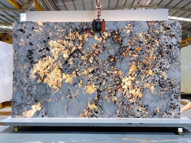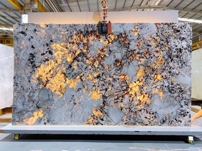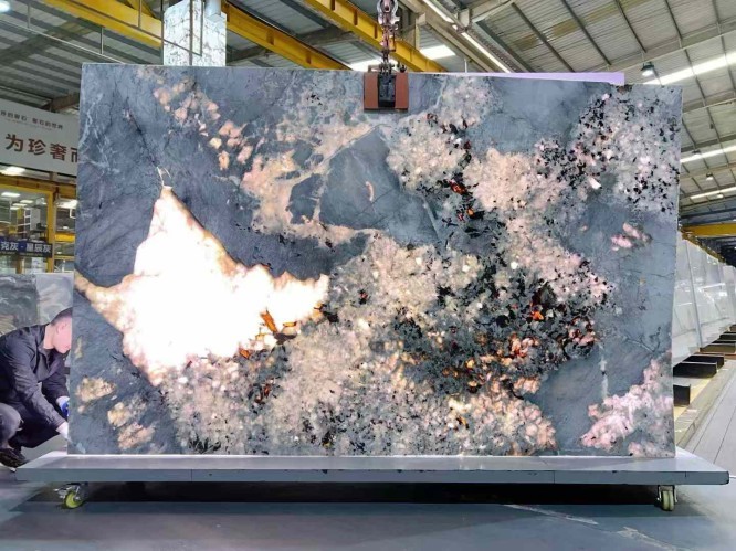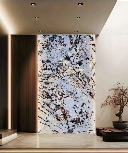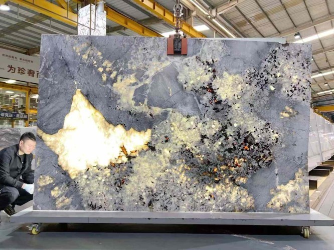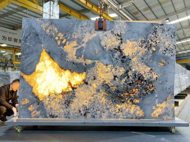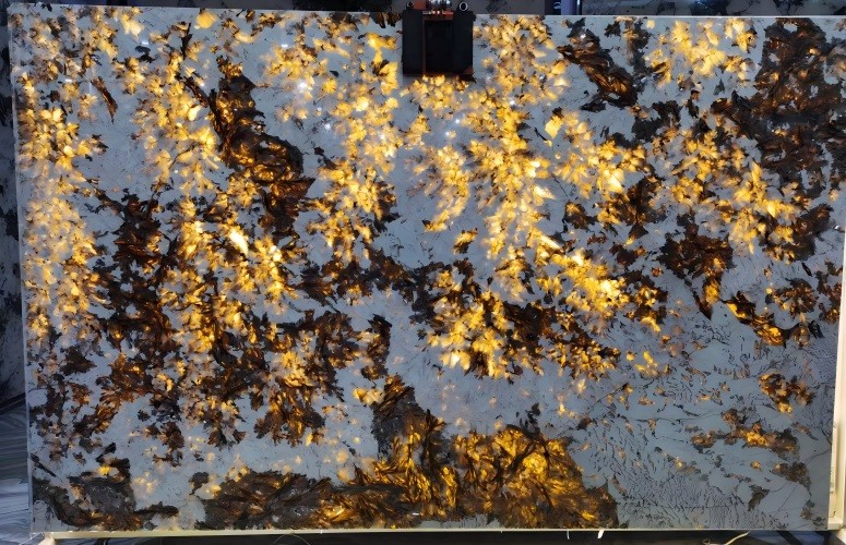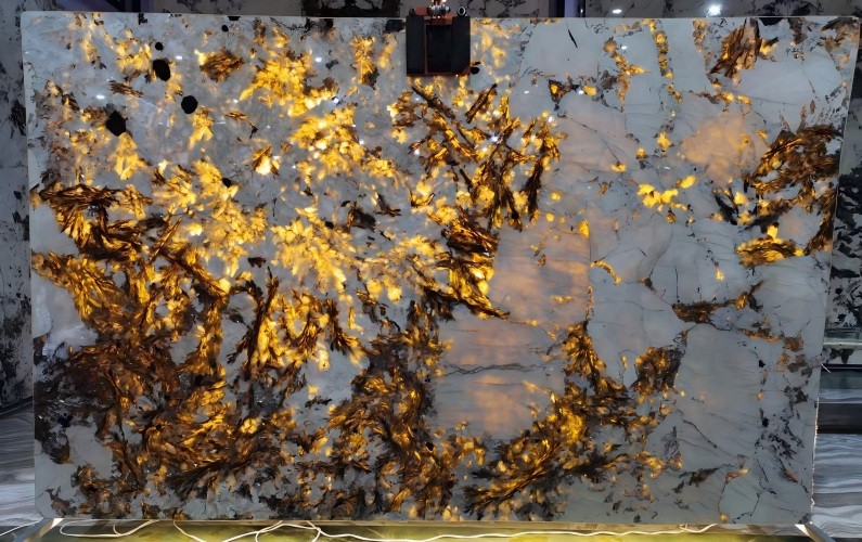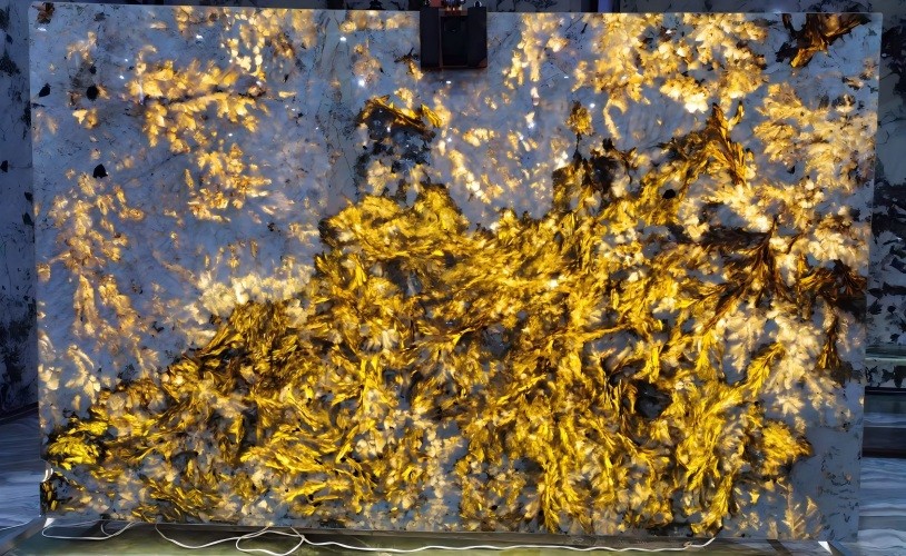 By installing LED panels behind the translucent quartz sections, the stone transforms into a luminous art piece. This is the #1 choice for luxury hotel lobbies, high-end bars, and modern living rooms.