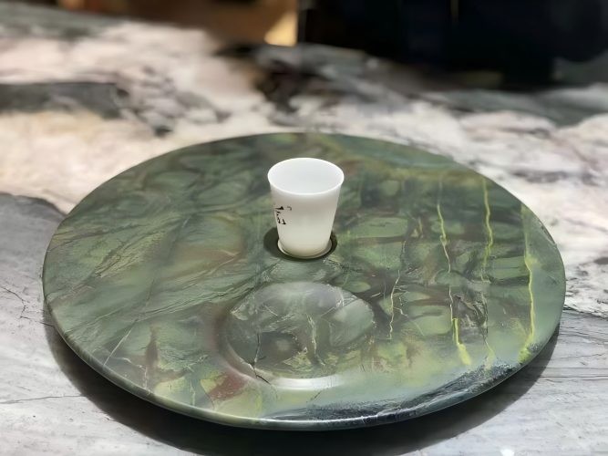 Because of its distinct circular patterns, this stone is spectacular when "book-matched" (where two mirrored slabs are placed side-by-side). It creates a kaleidoscopic effect often used in hotel lobbies, high-end living rooms, and office boardrooms.
