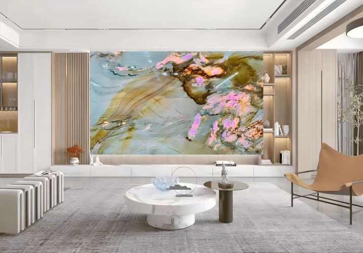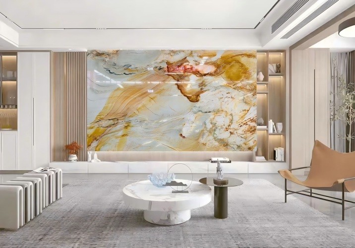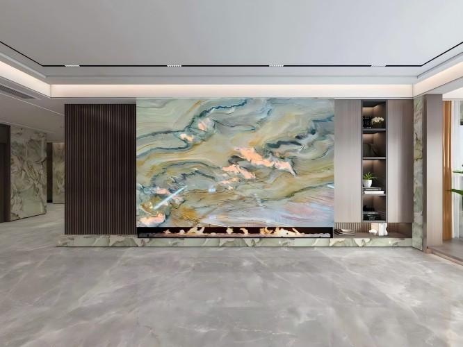 Feature Walls: Utilizing book-matched slabs to create "living art" in hotel lobbies or luxury living rooms.