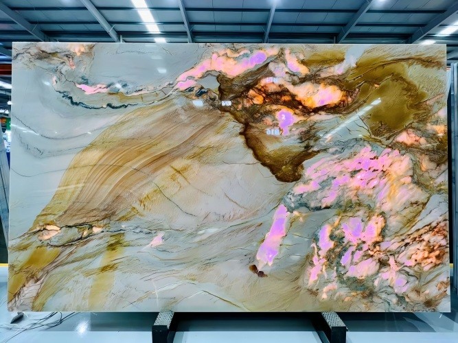 Backlit Panels: Due to its quartz purity, some areas of the stone are translucent and can be backlit for a breathtaking night effect.