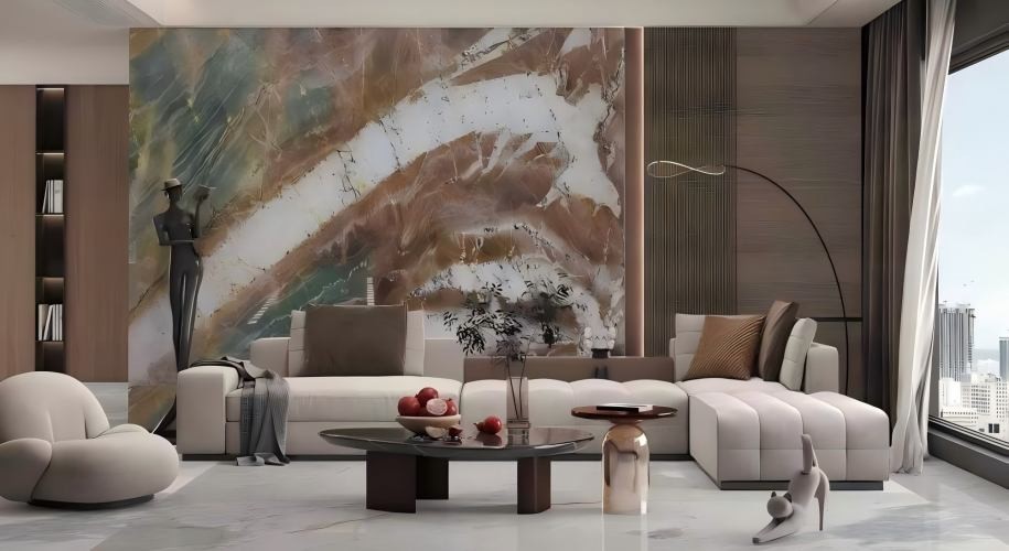 Feature Walls: Utilizing Book-Match or Quad-Match patterns creates a symmetrical, "natural art" focal point in living rooms or lobbies.