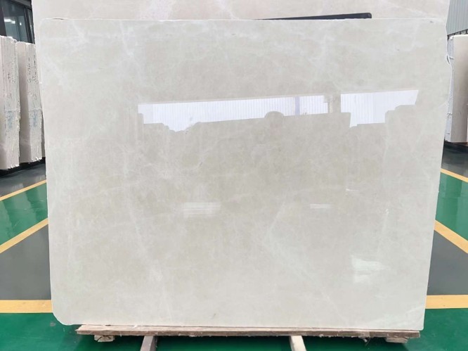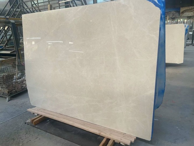 A premium Turkish marble featuring a creamy beige base with delicate cloud-like veining, ideal for high-end flooring, wall cladding, and vanity tops.