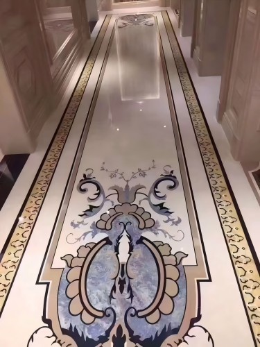 Waterjet Medallions: Due to its uniform color, it serves as an excellent background for intricate floor patterns.