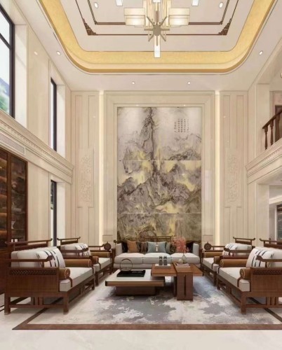 Large Format Applications: Using "book-matched" slabs to create a continuous, flowing "stone wallpaper" effect.
