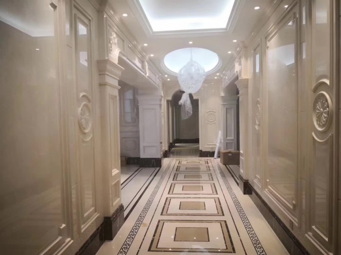 Waterjet Medallions: Due to its uniform color, it serves as an excellent background for intricate floor patterns.