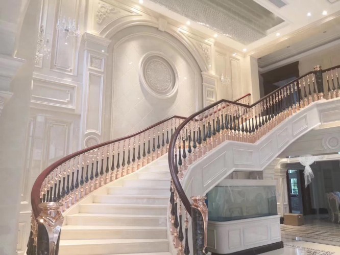 Carvings: Balustrades, columns, and fireplace surrounds.